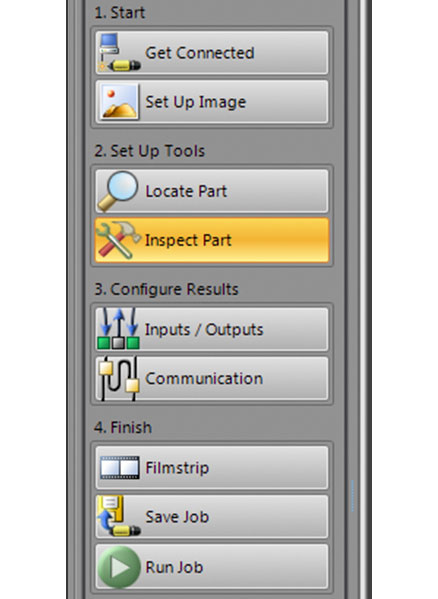 In-Sight 资源管理器软件界面的电子表格视图能让用户拥有满意的体验。拖放式视觉工具和图形调色板加上基于菜单的工具属性表格使任务配置更加简单。In-Sight 资源管理器软件还包含一个 EasyBuilder 环境。无需任何编程,可快速部署应用程序。