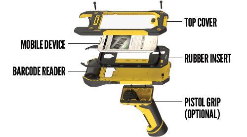 MX 平台是面向未来的模块化平台,可用于各种 Android® 和 iOS® 智能手机。如果您的设备需要修理或升级,只需更换顶盖工具包即可将 MX-1000 或 MX-1100 用于任何支持的移动设备。手枪式握把配件让为扫描引擎和移动设备供电的电池容量增加一倍。